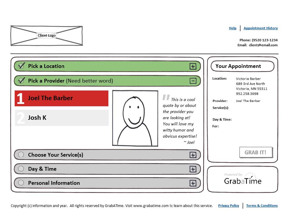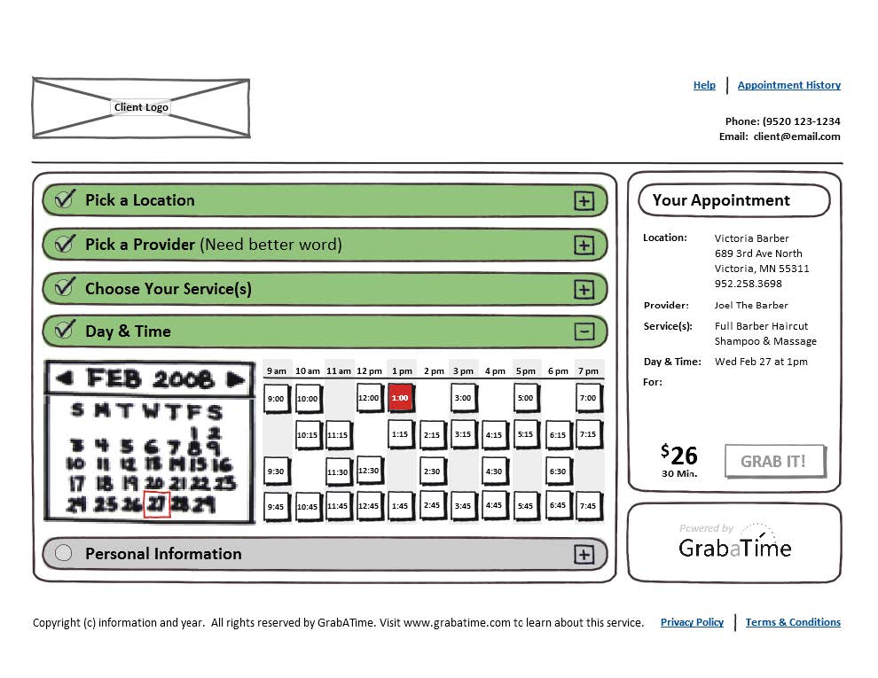 Above is an idea for a simple scheduling application. This was created in a tool called Balsamiq as a clickable *PDF that mimicked a site in a browser. It was created in a matter of hours, allowing me to quickly get it in front of users for invaluable qualitative user research.