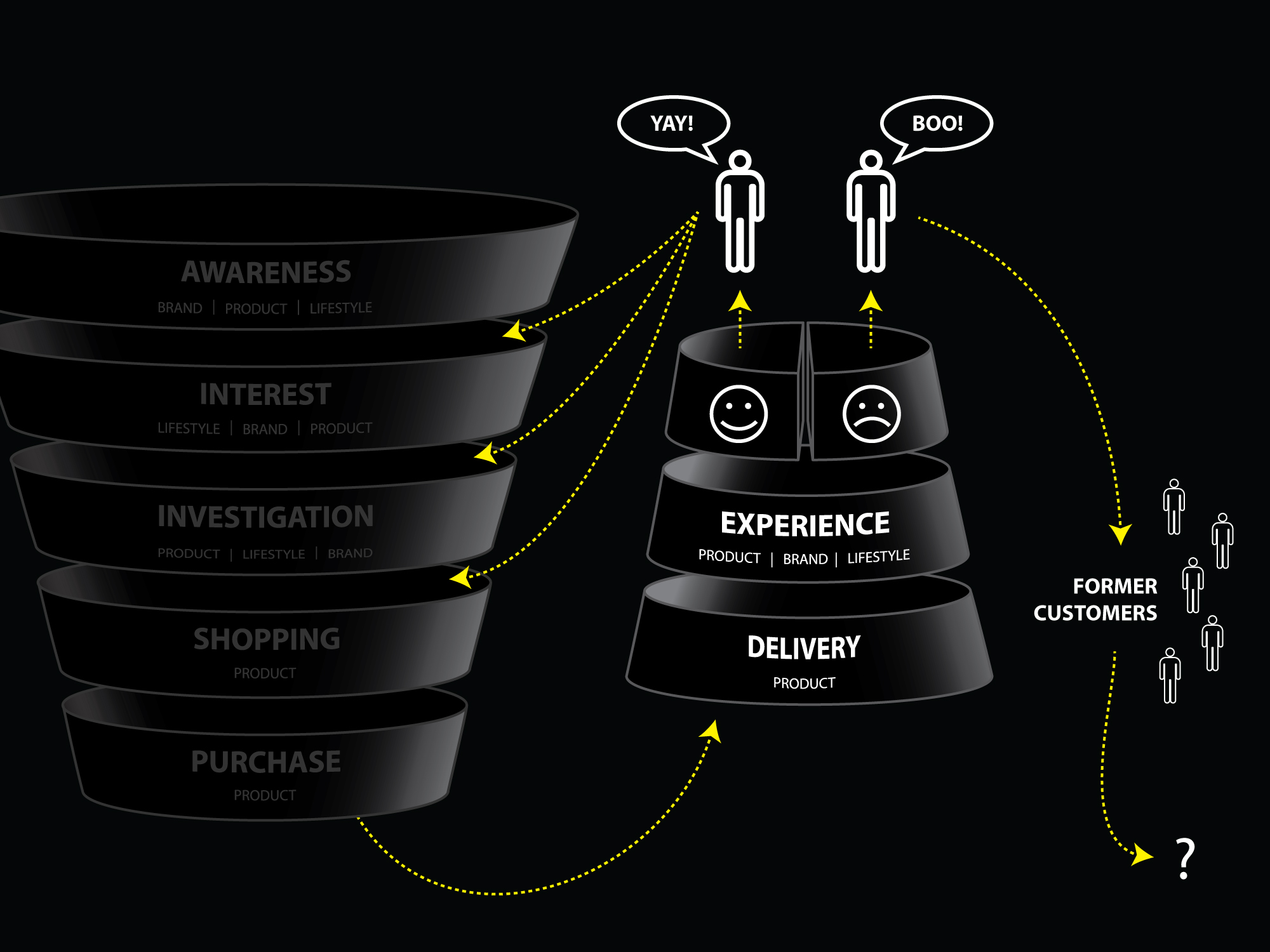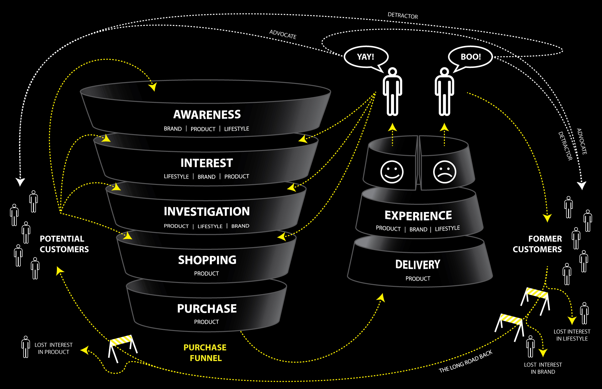 By customizing a traditional sales funnel and including an ownership "pyramid" it was much easier to illustrate the various point customers begin their shopping as well as how owners are pushed to become either brand detractors or advocates.